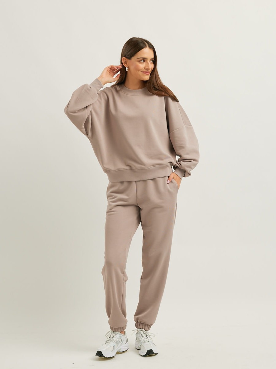 jak i w bardziej sportowej wersji ze spodniami dresowym