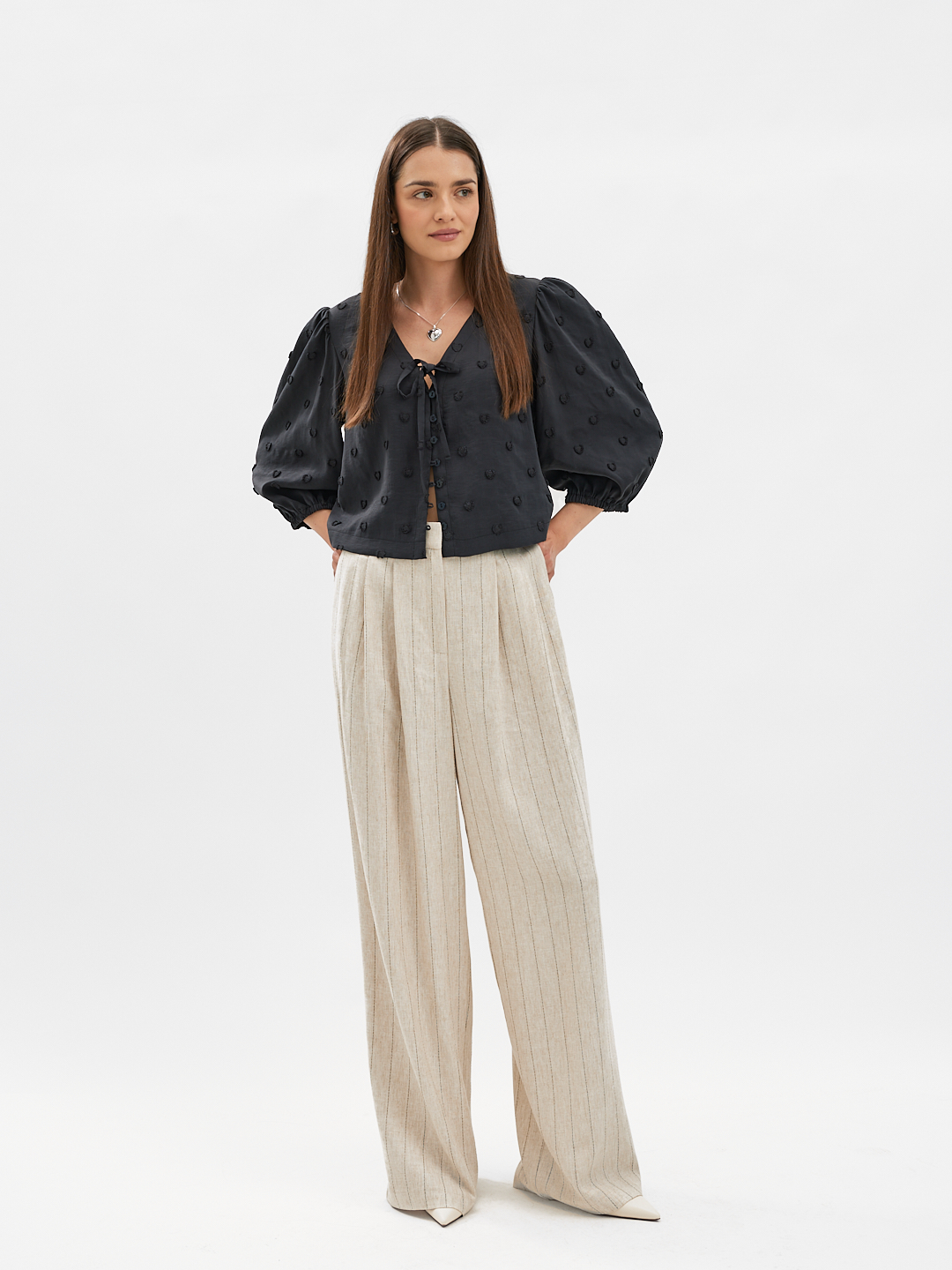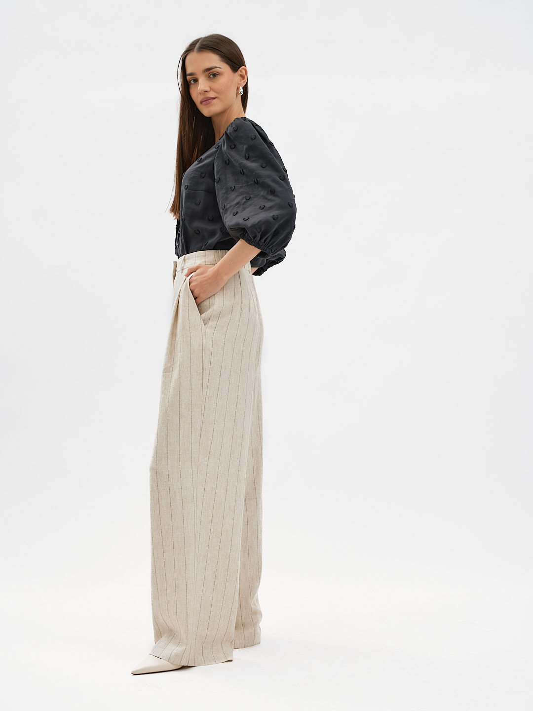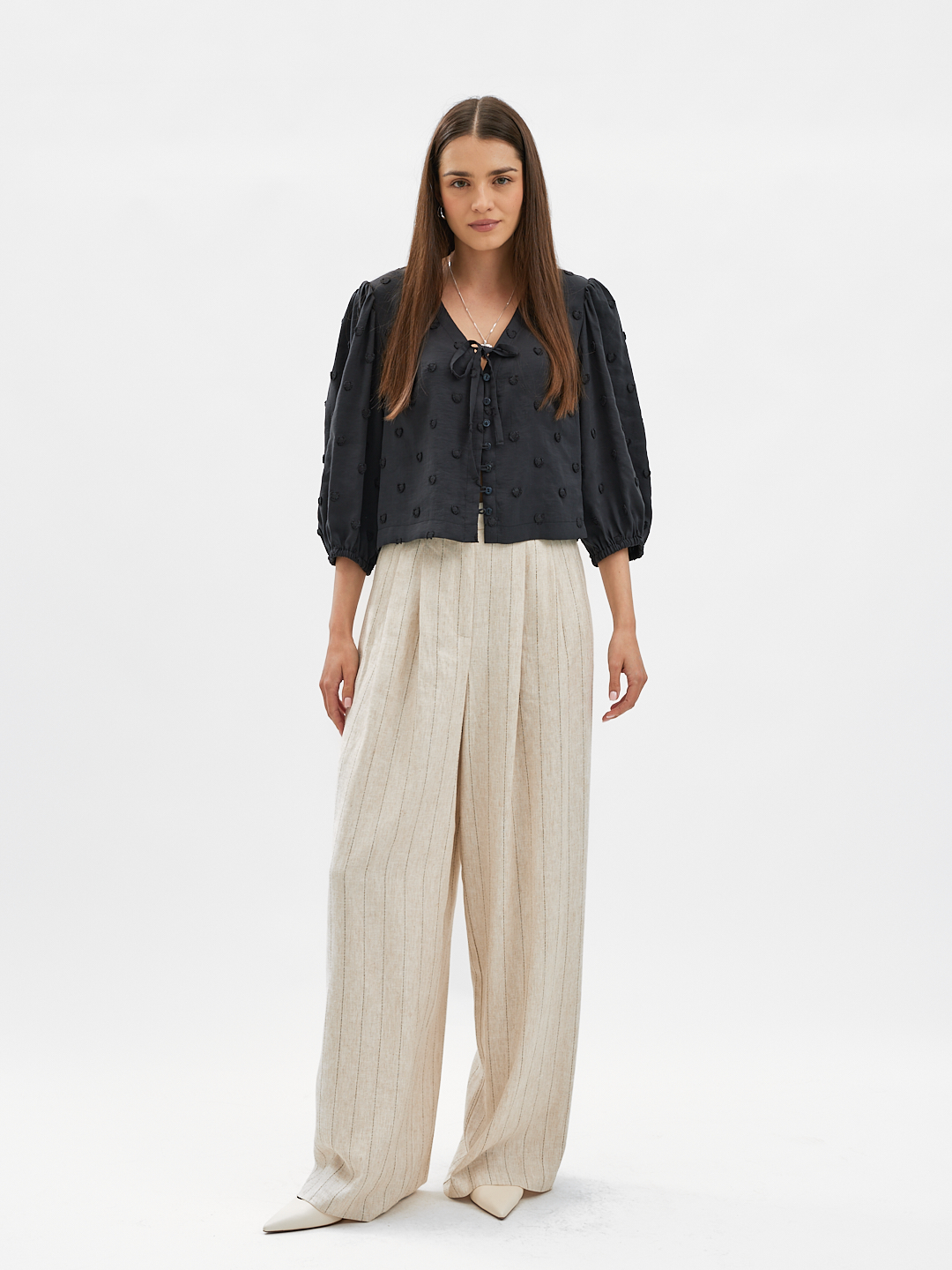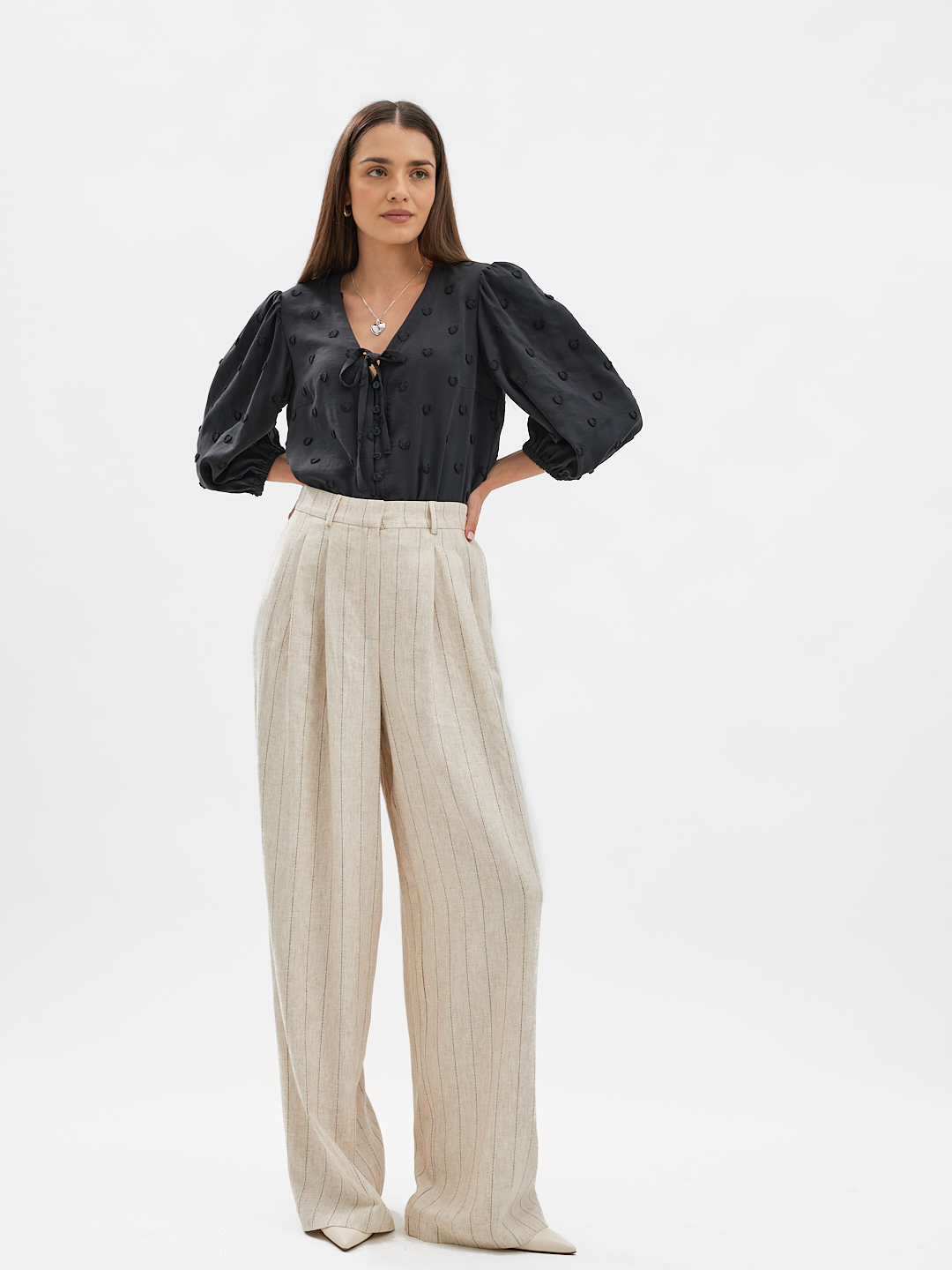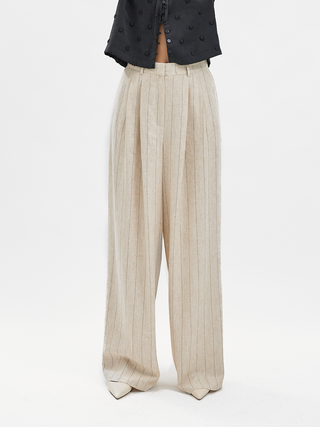 Uszyte z oddychającej mieszanki lnu i wiskozy, zapewniają komfort noszenia i naturalną przewiewność – idealne na sezon wiosenny.