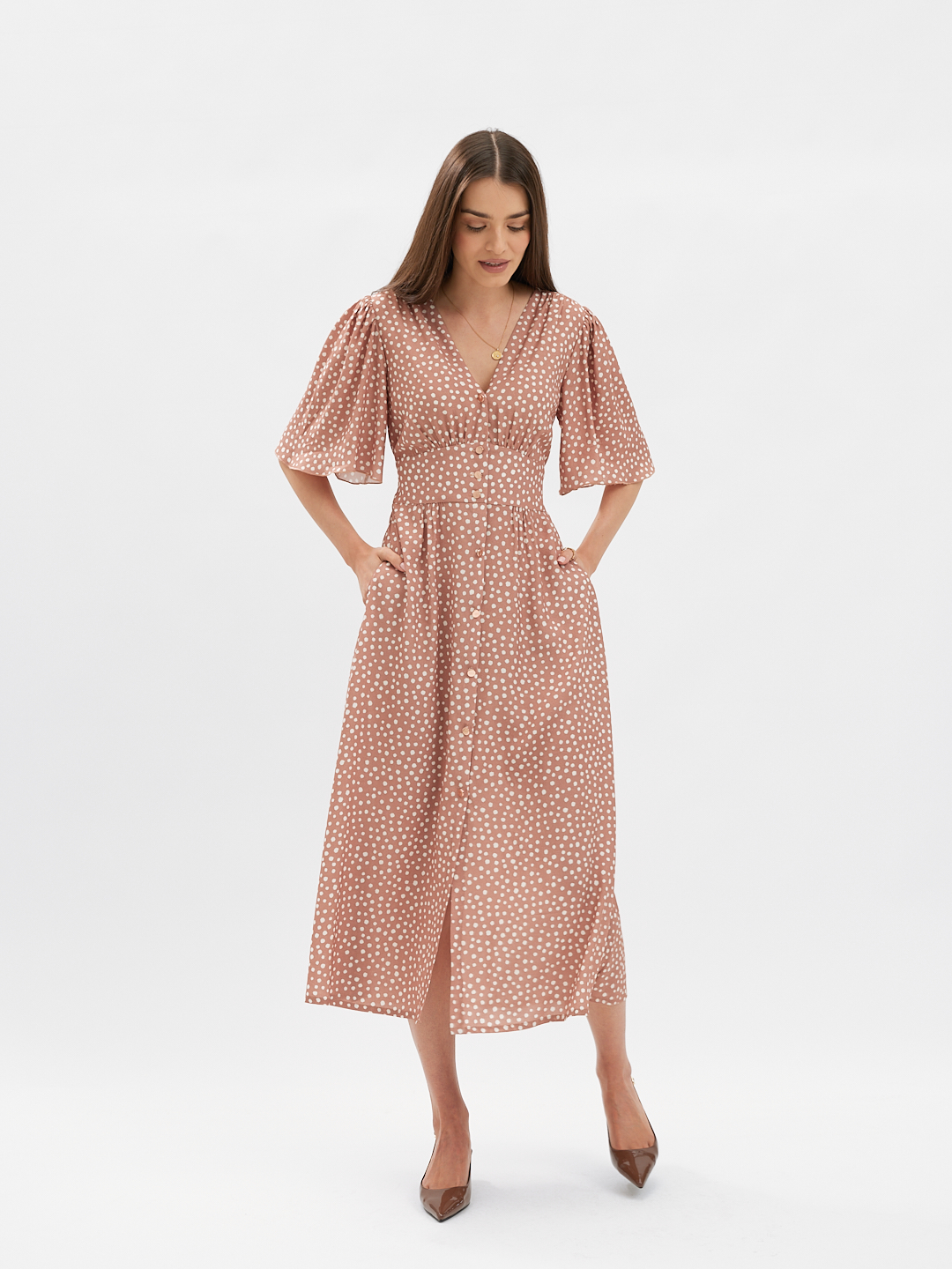 Sukienkę uszyliśmy w naszej lokalnej szwalni w Polsce.