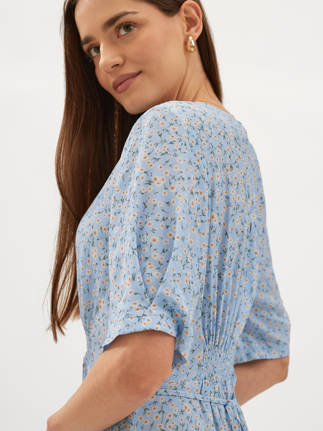 Marszczenia na ramionach oraz w pod biustem dodają jej uroku i świetnie dopasowują ją do dużego i mniejszego biustu.